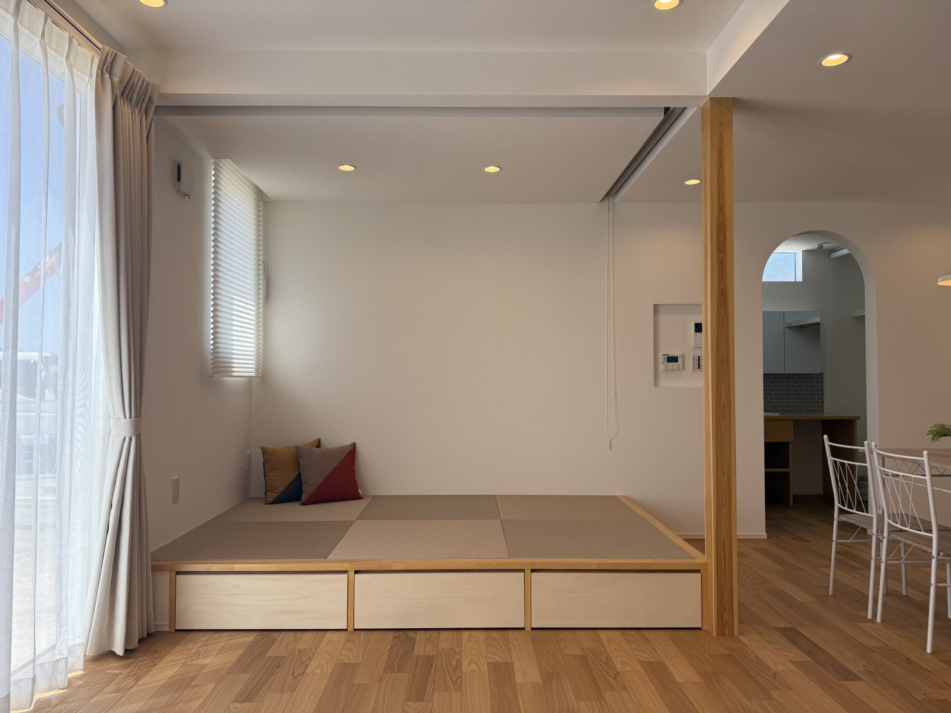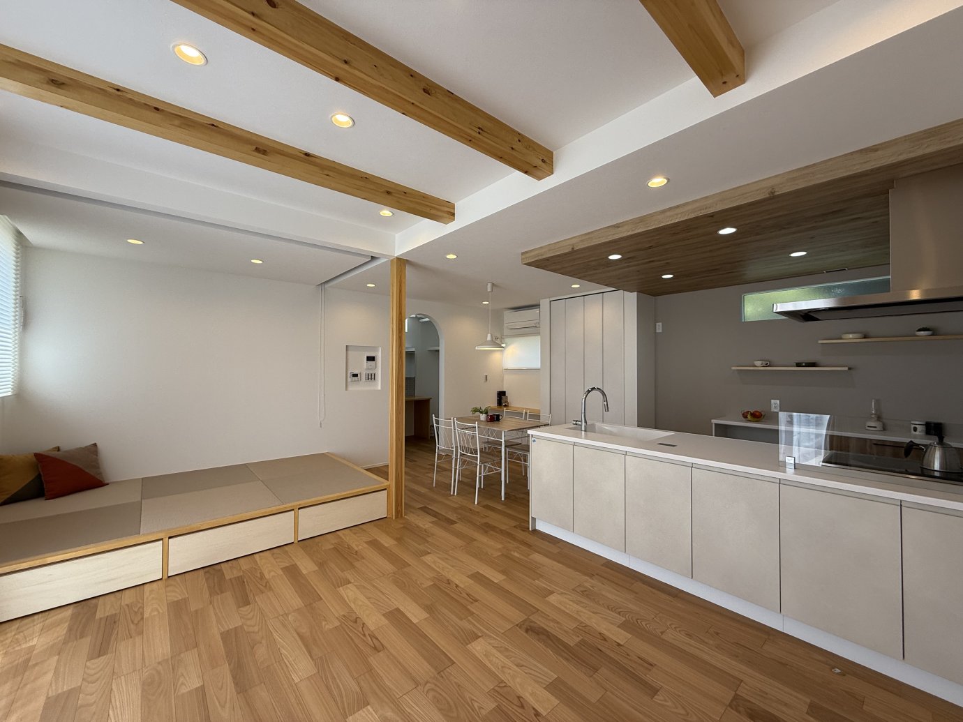 ホテルライクなキッチンと小上がり畳のあるナチュラルシックな家