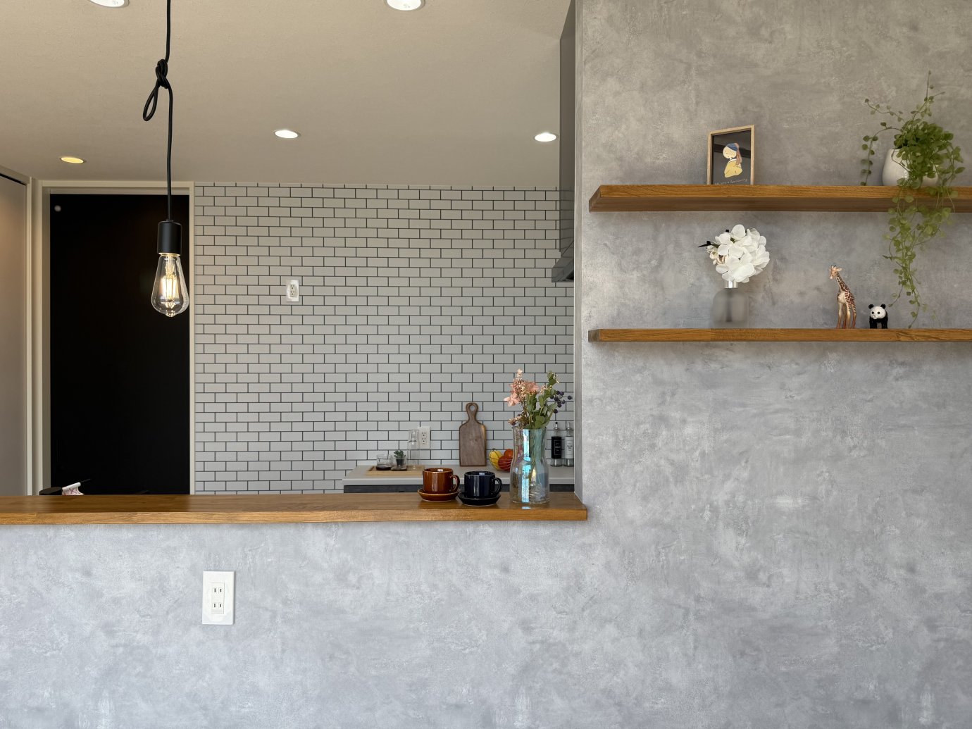 02.タイル調×コンクリート調の組み合わせがお洒落なカフェ風キッチン