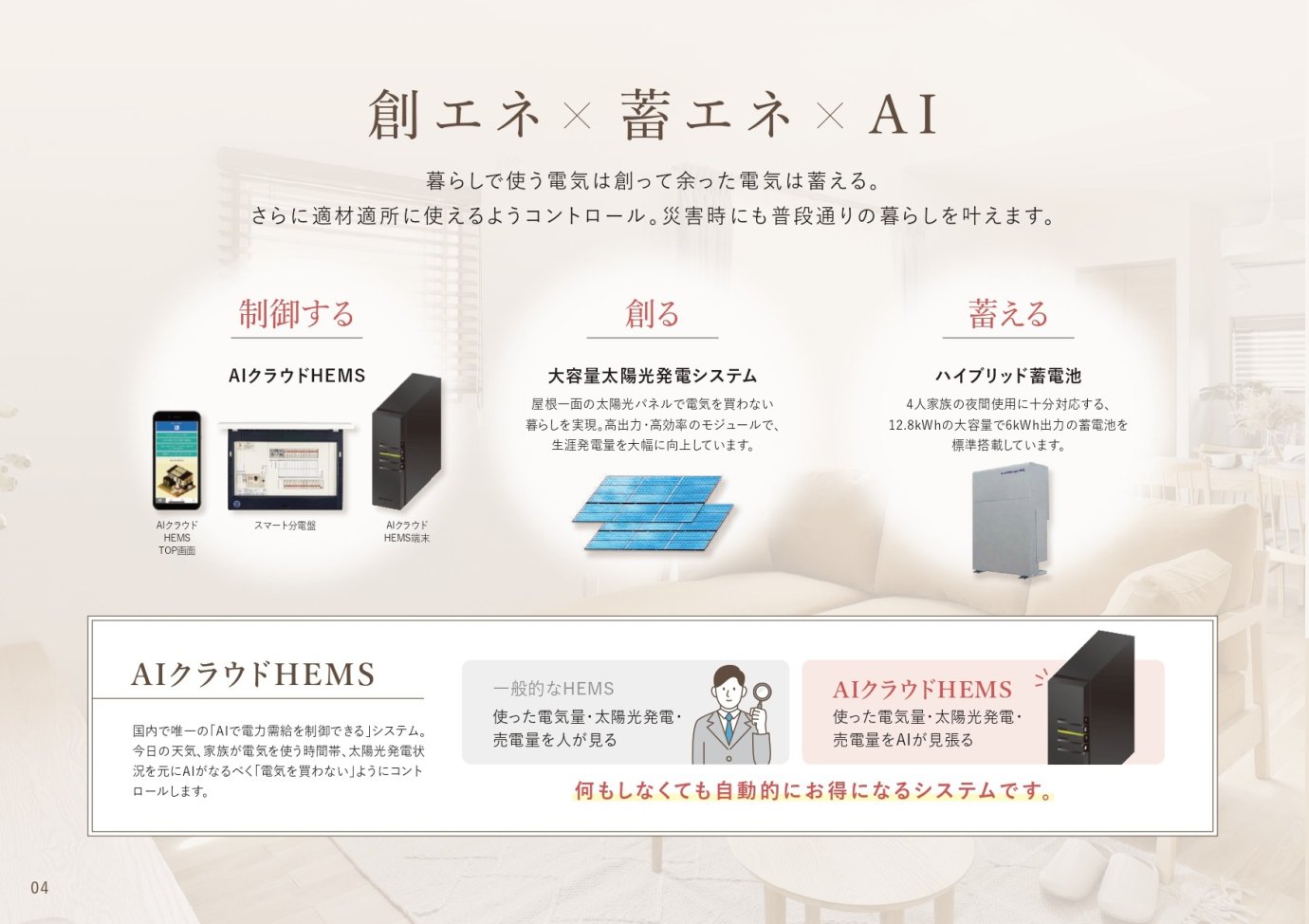 - 「毎月電気代0円」を目指す仕組み(太陽光×蓄電池×AI制御)