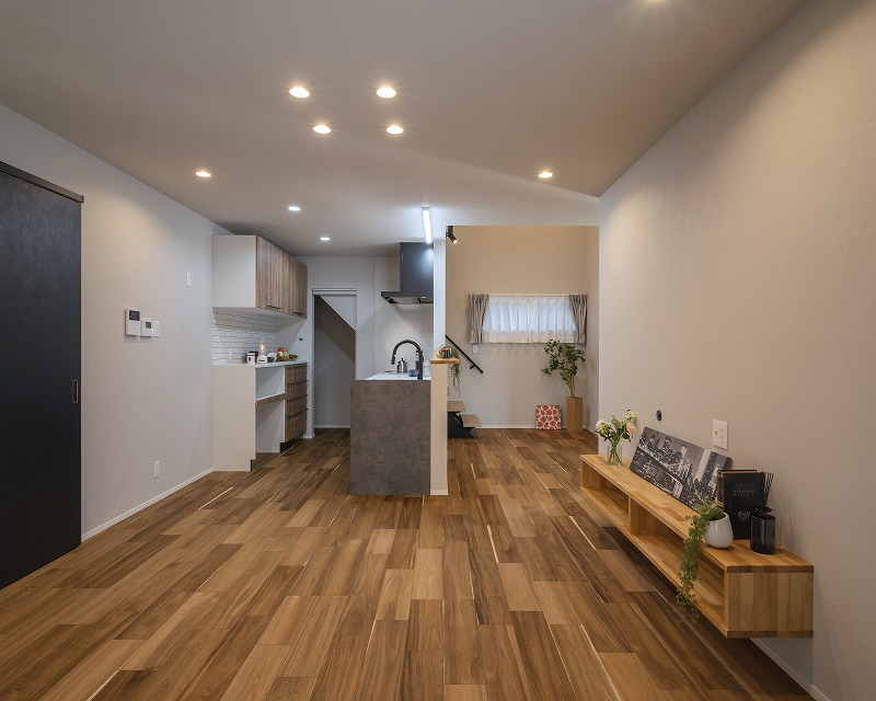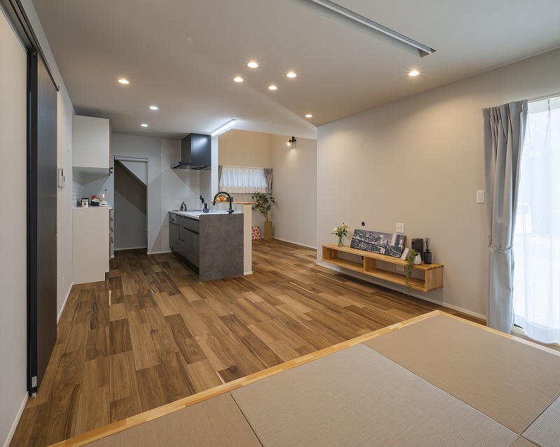 木目調のフローリングと開放的な間取りが魅力のLDK。