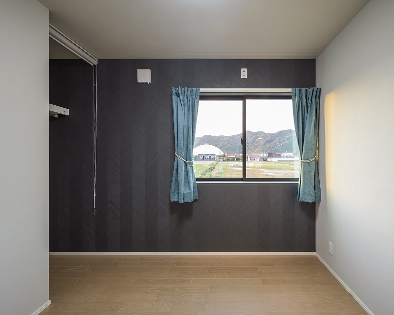 正面の窓が景色を額縁のように切り取り、まるで一枚の絵画のようです。