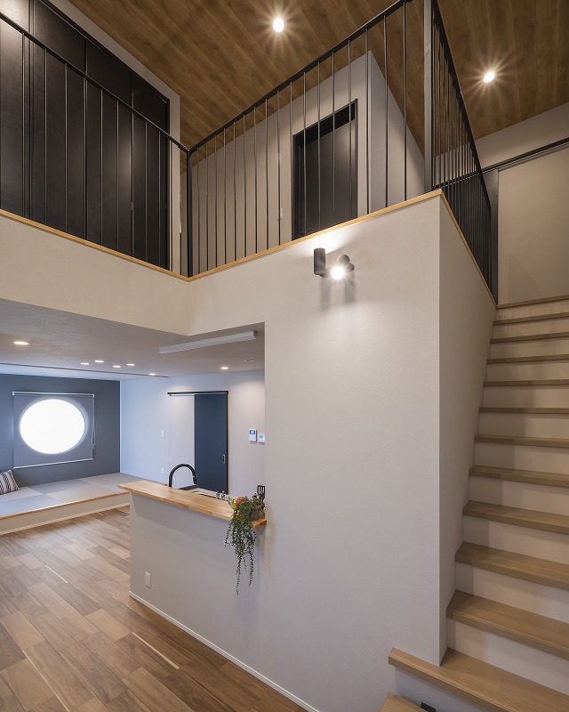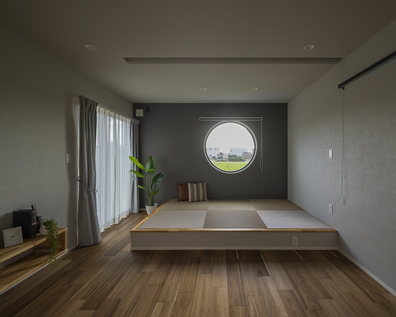 丸窓がアクセントの小上がり和室がある家