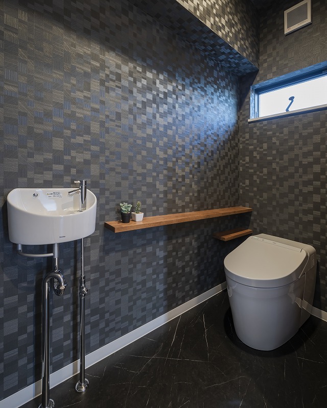 温かみのある木目と、深いネイビーカラーが上品な雰囲気に。 -