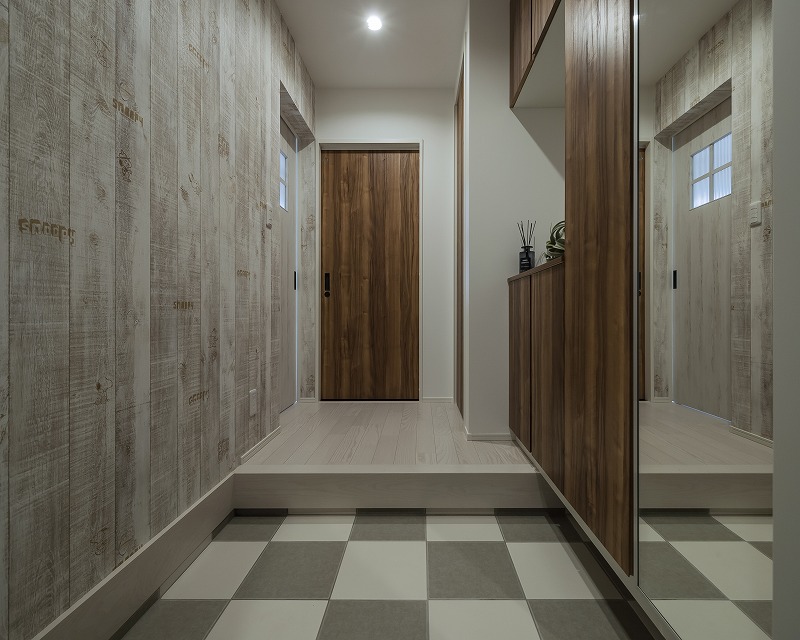 レトロさとモダンさを両立させた玄関フロア。