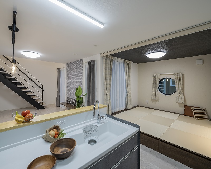 キッチンからリビング、和室が見渡せる安心設計。