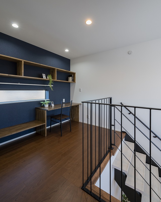 階段上のスペースを無駄なく活用したスタディーコーナー。